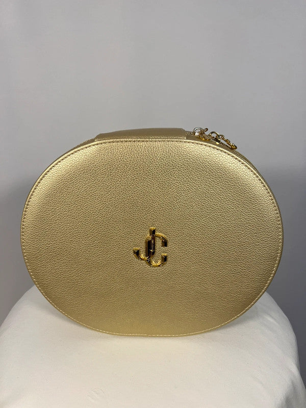 Coffret/Trousse de toilette doré avec miroir intégré à l’intérieur, contenant 3 produits Jimmy Choo :