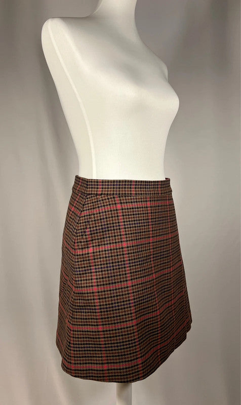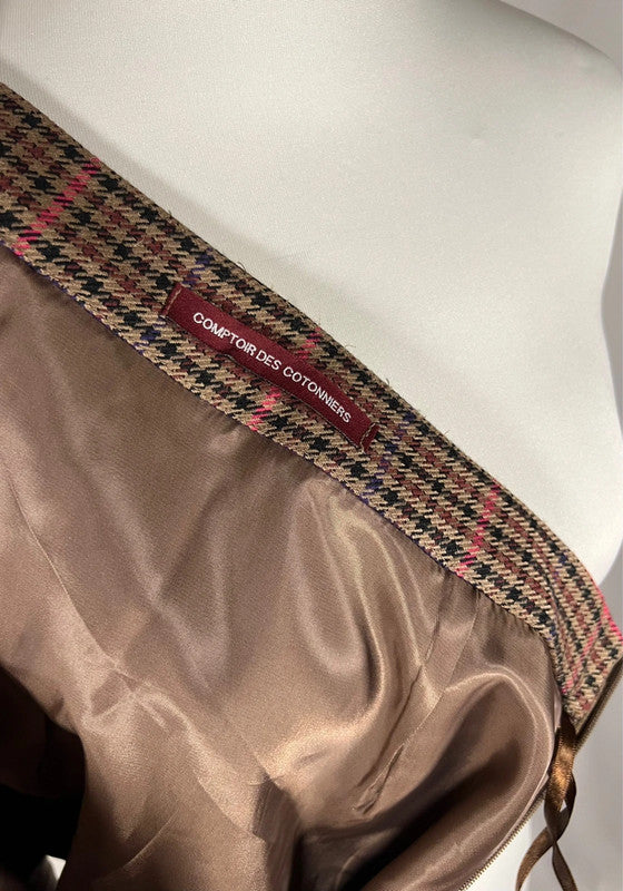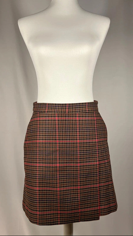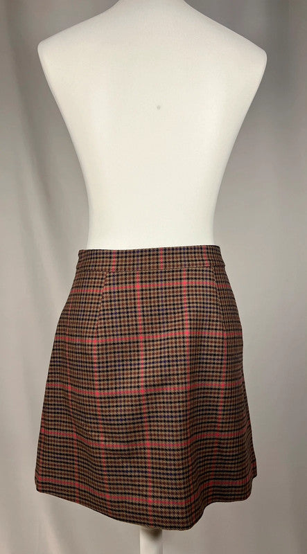 Jupe courte Pied de poule, marron et rouge.