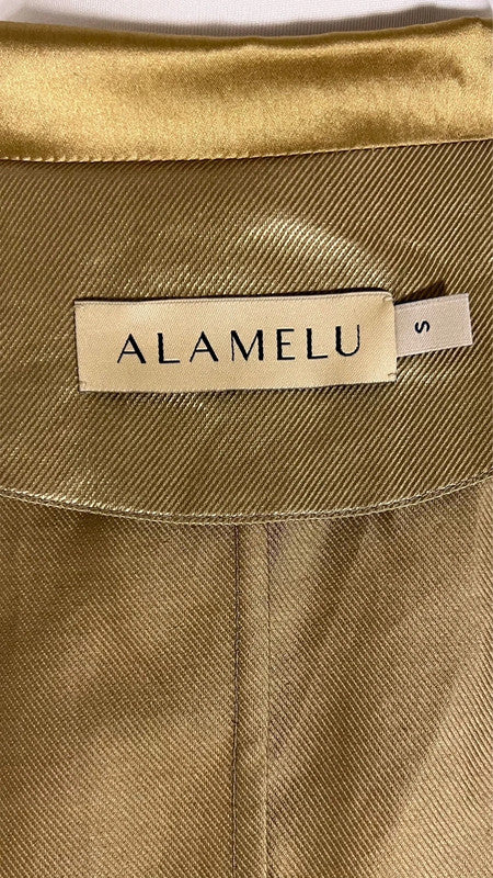 Robe courte/Veste dorée Alamelu sans manches avec une ceinture, fermeture à 3 boutons et poches apparentes.