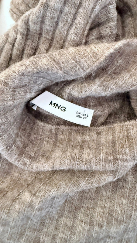 Robe à maille côtelée, col montant et manches longues ajustées. Coupe près du corps de la taille aux chevilles, fentes discrètes aux côtés pour faciliter les mouvements (légèrement épaisse).