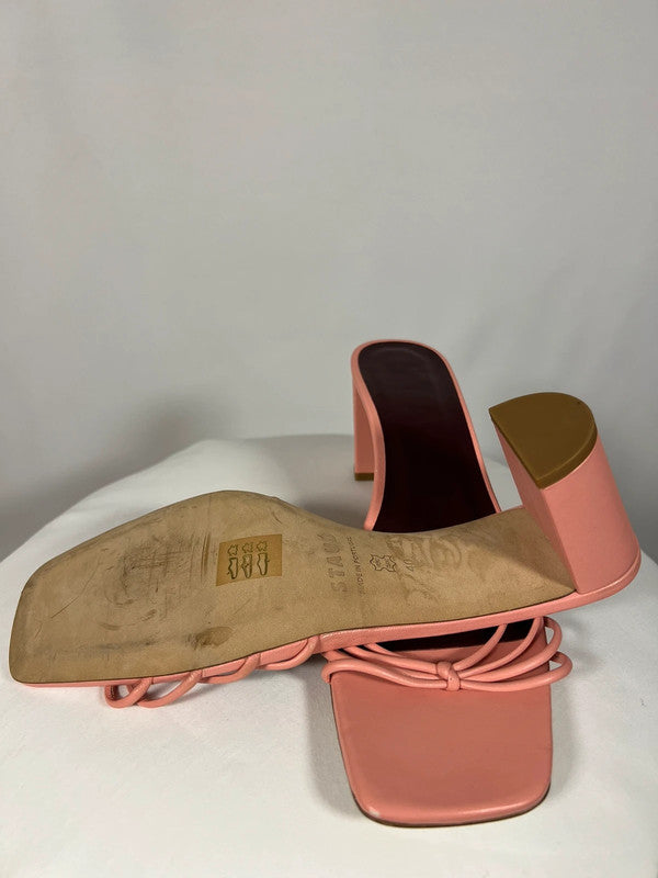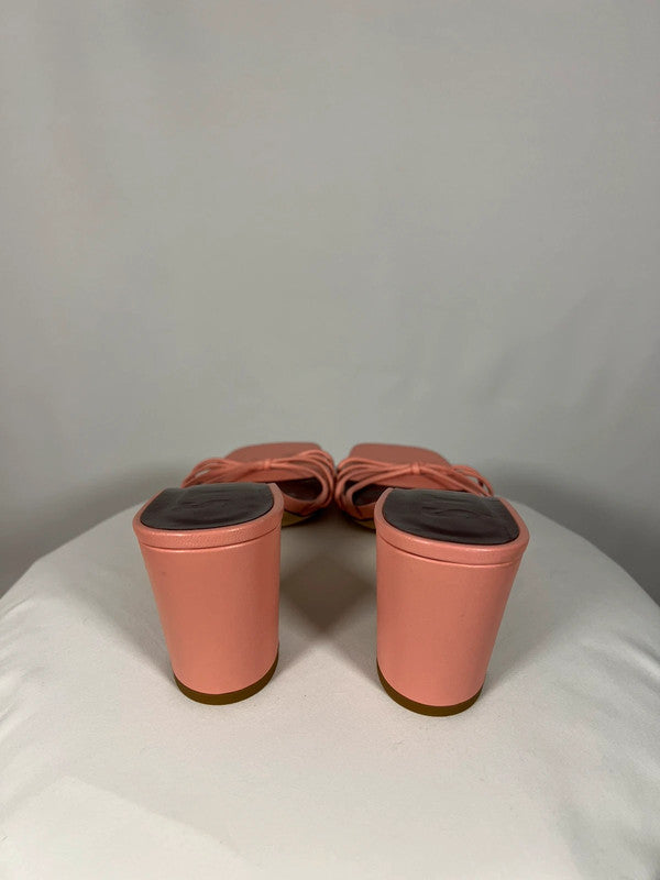 Sandales à talons de 7cm (cuir lanières) rose/corail.